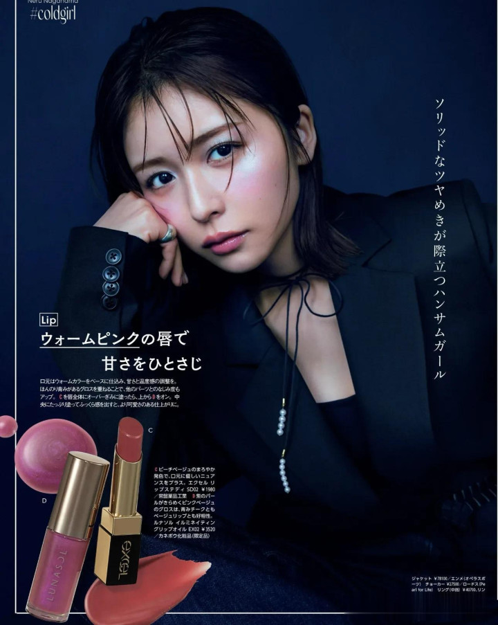 冷色腮红+银眼妆容易显得距离感强,所以唇一定要用“暖粉调”把气质拉回亲和。